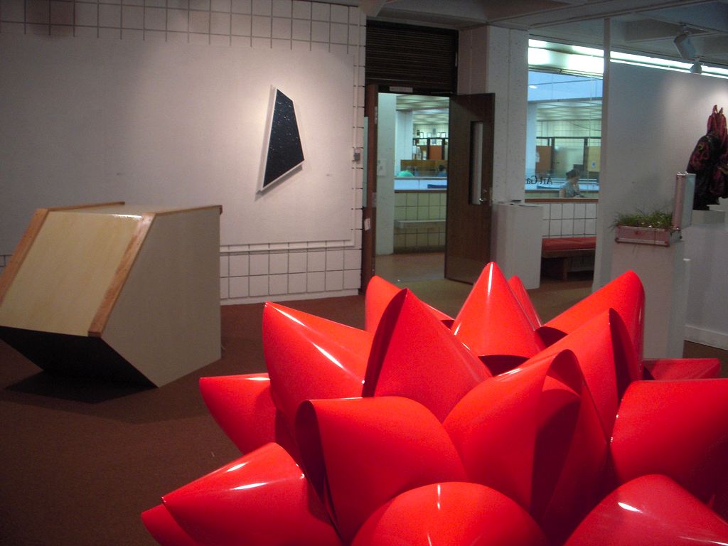 It’s a youthful show, filled with ideas and issues many young artists are concerned with, like the city, decay, pretty veneers that hide tough truths. And if you’re in the habit of viewing art at the Vox Building, you may well have seen a couple of these works before, like Piper Brett’s cherry red gift bow, which was in the juried Vox VI show in 2010. The piece is as big as a Smart car — and it’s built like one, out of steel.