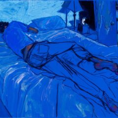 The latest show at FJORD Gallery, Bleach Blue, seems to be in pursuit of an aesthetic all its own. Curator Sean Gerstley wanted to have a show including works in several media that was rigorous and linked by the notion of “bleach blue,” both as a color and just in the sound of the words, signifying an idea, a genre, and almost its own style of art. Whatever is meant by “bleach blue” is likely different to each viewer, represented by whatever linkage they can find between the diverse, almost schizophrenic medley of nine pieces in this show.