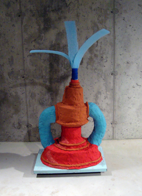 Also in the exhibit are Tim Eads, with his a mega-toilet paper roll that’s almost nauseating as a statement on waste but humorous in an art gallery, and Ginger Lukas, with a non-functional Play-doh fire hydrant/flower vase that seems ready to come to life as a bizarre Sesame Street character.