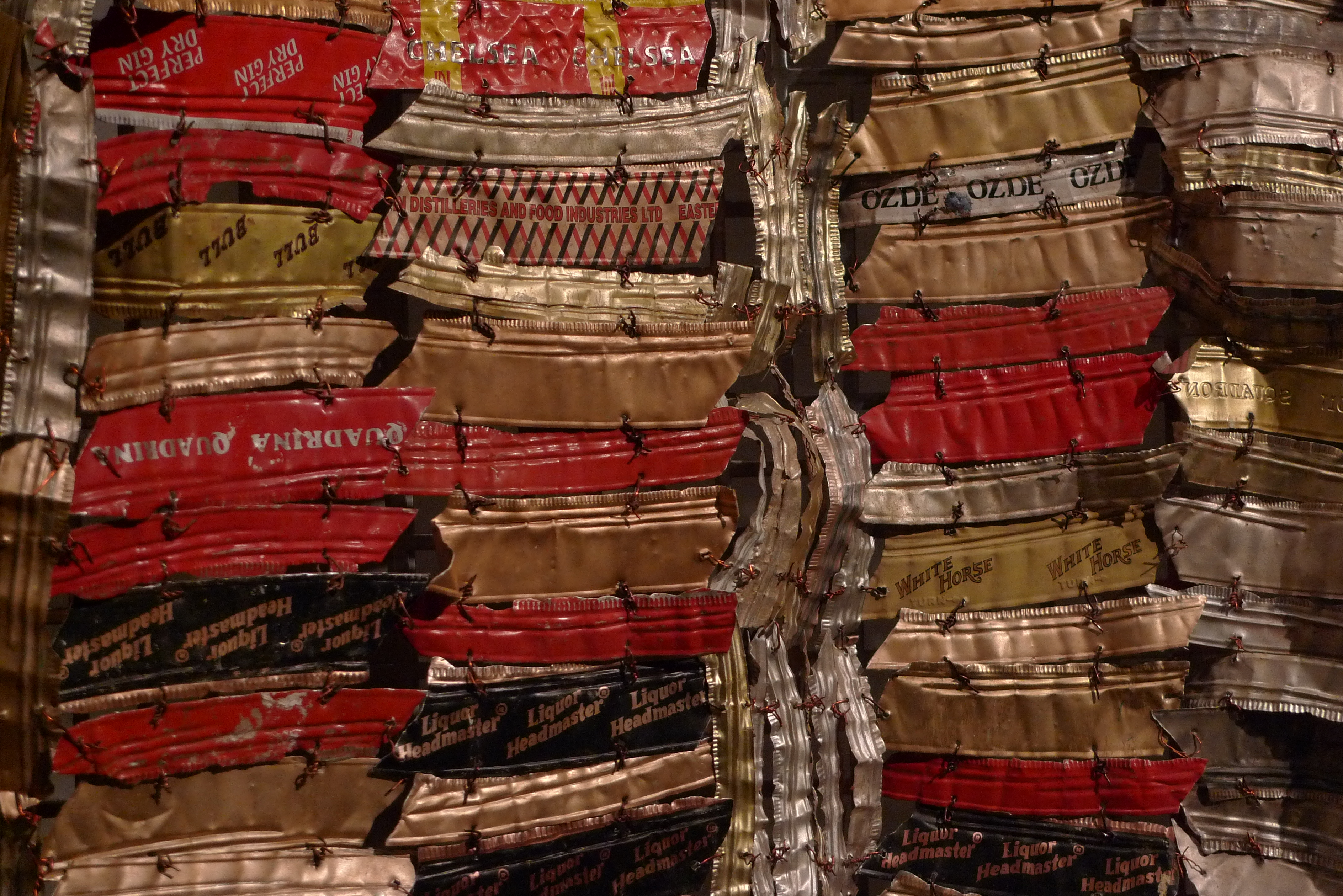 detail, showing Anatsui’s initial method of using bottle caps, which he terms ‘plain’