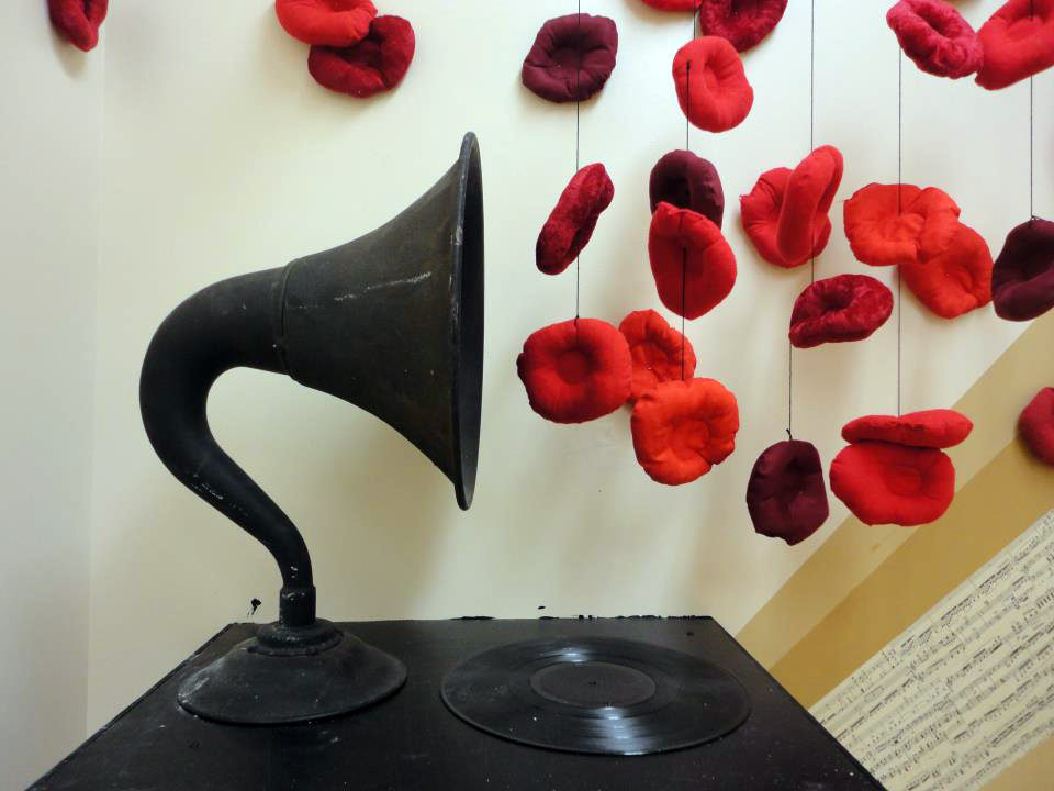 BRIAN WHITELEY: Another artist we like is Ruben Acosta. He works with assemblage and found objects. We found him on the internet. And there’s Brooke Holloway who deals with sex and text. Melissa Maddonni Haims, an artist from the Philadelphia who is a yarn bomber – she ties things up in yarn; Melissa will be yarn bombing the mezzanine railing at the Catalina Hotel during the fair.