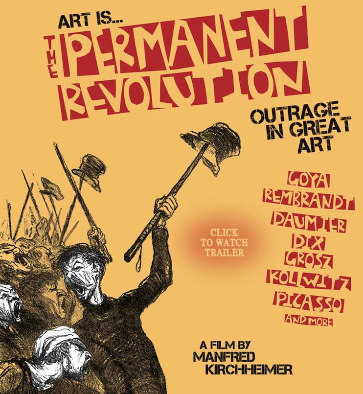 I have never known a movie title with an ellipsis in it…and I don’t imagine that will become a trend. But that’s a small nit to pick in Art is…The Permanent Revolution, a documentary by Manfred Kirchheimer that focuses on three contemporary printmakers who make anti-war art. Along the way, the movie tells the stories (and shows the images) of some of the greatest protest art through the ages.
