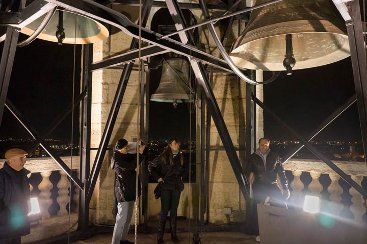 An unusual diversion was the time we spent climbing through towers at the Verona Cathedral and the Church of Sant’Anastasia with a group of volunteer bell ringers (campanari) from a school where the traditional form of Veronese ringing continues to be taught. These bells are marvelous sculptural objects in themselves and the nighttime views from the towers were fabulous. During a concerto (ringing based upon a musical score), the sound from within the tower is unforgettable.