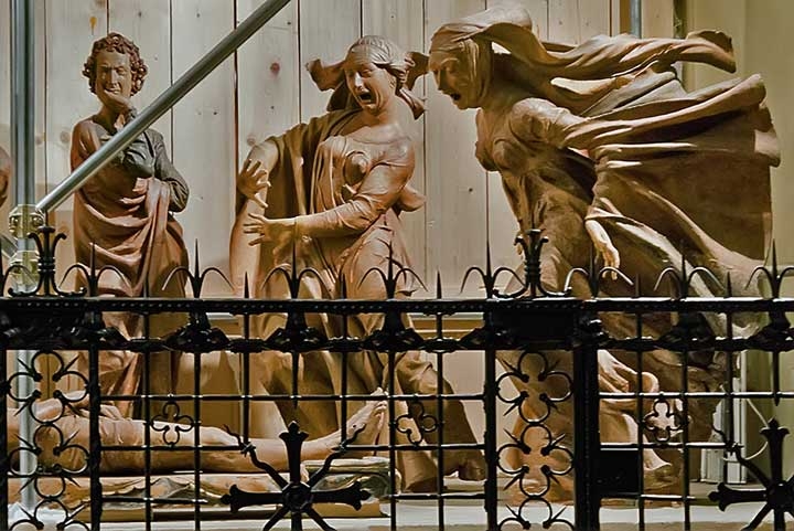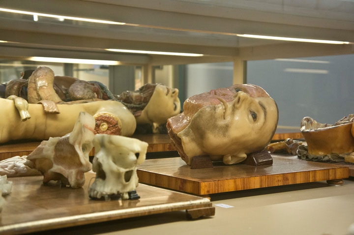 A trip to Bologna rewarded us with some beautiful street art and a sampling of great old masters. We were surprised to discover that the Pinacoteca Nazionale—the primary historical art museum—allowed us free entry when we told them that we were professors of art (we always ask, but we are usually not even offered a discount!). A spectacular part of our visit was seeing several examples of a sculptural form called a compianto—a highly realistic group of life-size terracotta figures in lament around the dead Jesus. This was a medieval specialty in the Bologna region. The ones by Alfonso Lombardi at the Metropolitan Church of San Pietro and by Niccolò dell’Arca at the Church of Santa Maria della Vita are astonishing. These works, which can be seen as antecedents of both Rodin’s Burghers of Calais and contemporary installation art, deserve more attention than they have received in the art history texts. To see the Lombardi, we had to find the custodian to turn on the lights for us, since the coin-operated light machine was out of order. The dell’Arca was still underneath scaffolding to protect it from aftereffects of last May’s earthquake. Continuing on a hyper-realistic sculpture theme, we scouted out the wonderfully peculiar Museo delle Cere Anatomiche L. Cattaneo, an historic collection of highly detailed anatomical wax models that easily compete with anything at the Mütter Museum in Philadelphia. It’s housed at the University of Bologna; for figurative artists, or just the curious, it is definitely worth a side-trip.