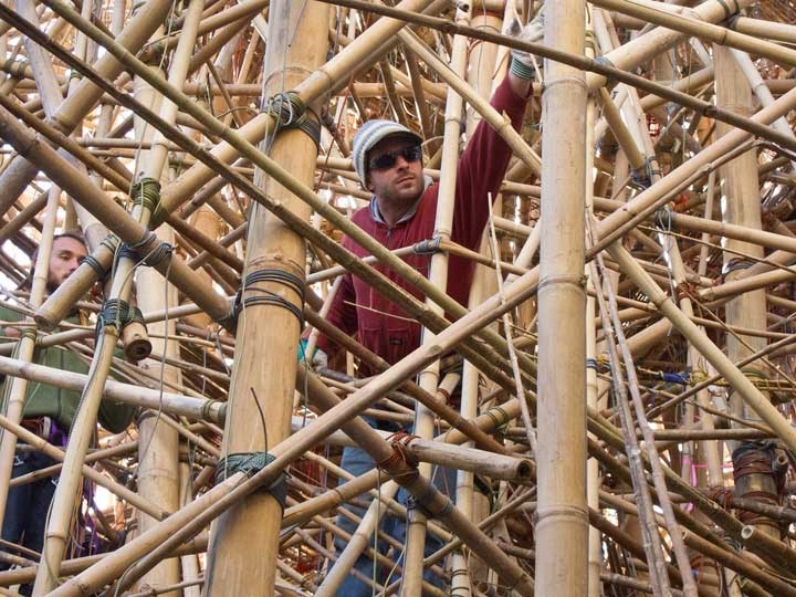 Big Bambú, similar to, but taller than, an earlier version they did at the Metropolitan Museum of Art. We were invited to come back that night for a “bambú party” and a climb to the top.