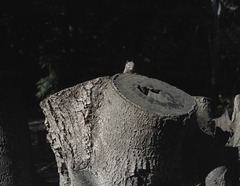 Morning Commute and Early June are much more like snapshots, both taken close up and blurred slightly. In the first, a shaft of raking light right reveals a duck insolently flapping its wings—apparently not pleased to find a human in its path. In the second, a deer’s enormous head gazes into a rain soaked car window, not quite the “deer in the headlights” we are used to seeing. Although an animal is a central to both images, its location in the frame is off-center, suggesting that neither was conceived as an animal portrait. It is clear that the non-human is doing the surveillance in these shots.
