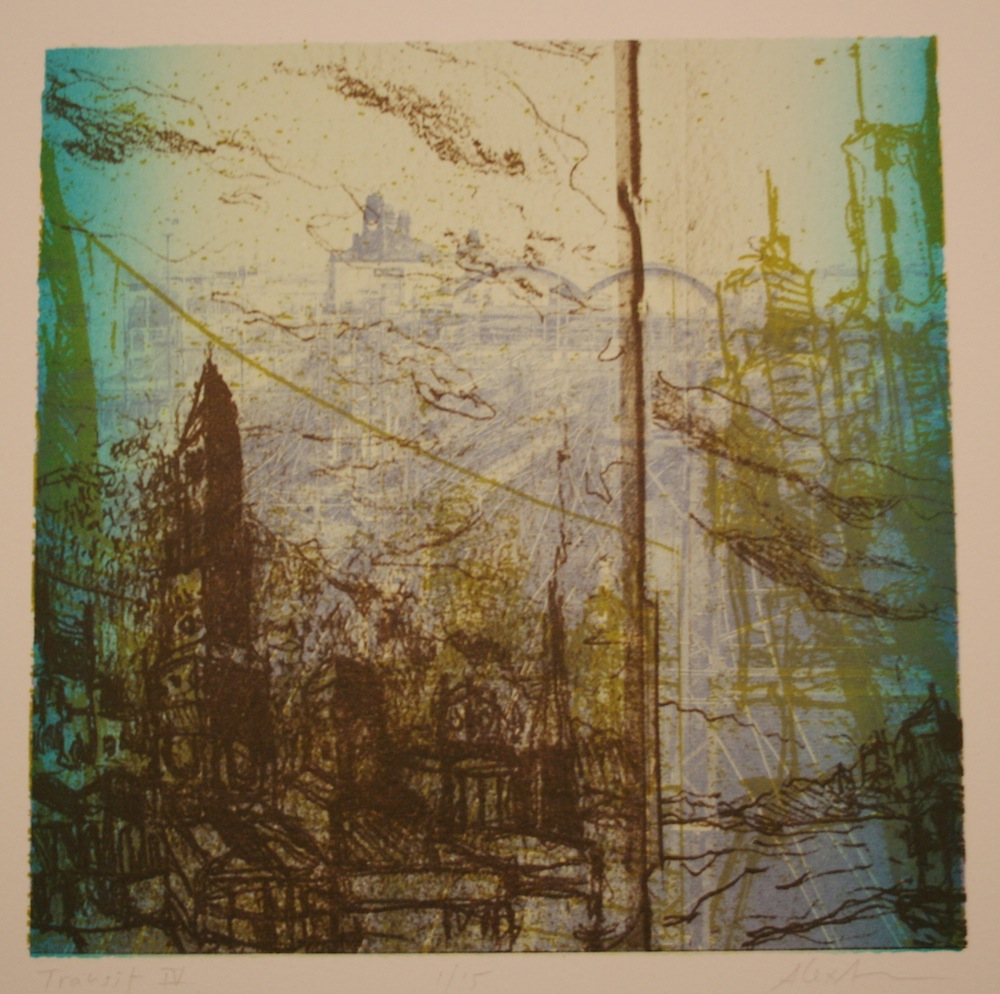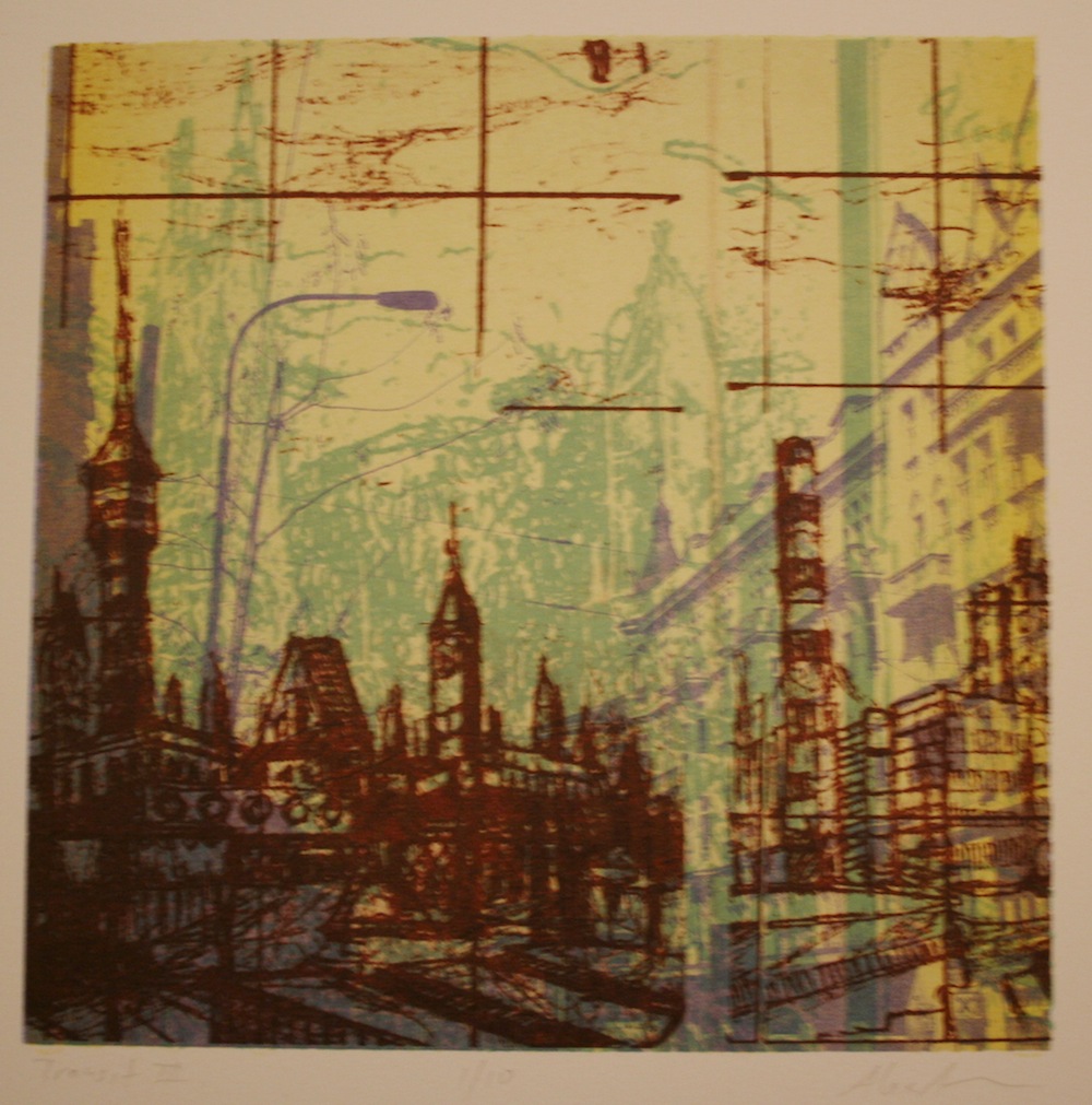 Creating lithograph portraits reminiscent of miniature brooches, Hanseens’ subjects remain historically deadpanned in delicate detail. Her pieces carry an air of pointillism with the colors remaining a surprising perfection. Kirillov’s Transit series presents stunning lithograph landscapes in complicated line and form, delivering color variations that re-imagine a city’s dynamism and texture. And Baez’s deep contrasts and understanding of line’s boldness create a vertical statement in black and white, the influence of Mexico’s Taller de Gráfica Popular clearly pumping through his blood (not shown).