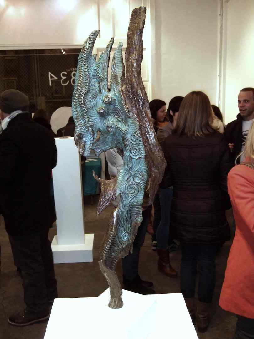 Peter Franz’s work “Down The River Babylon” captures the eye in a room full of other works. The striking work asks you to grapple with what it is, and the title gives you a hint. [Ed note: The work pictured above by Peter Franz was previously mis-labeled as a work by Barry Parker. Below is the Barry Parker work. We regret the error. — the editor]