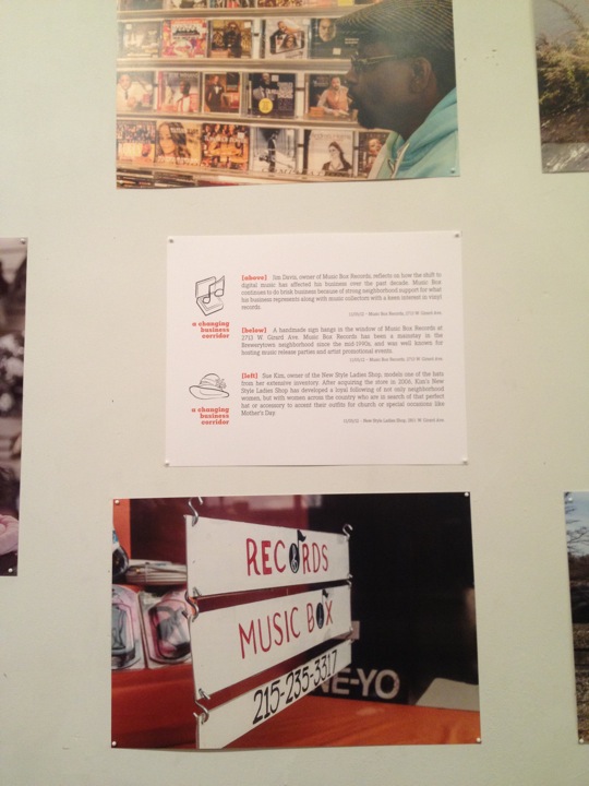 The Business Corridors section of the show showcases portraits of local businesses and their owners, all of whom have long been essential pillars of the heart of Brewerytown. One portrait captures Jim Davis, the owner of Music Box Records, the immediate neighbor of Next City’s Storefront (I would encourage anyone who visits the show to also stop next door for an authentic and gratifying record shopping experience.)
