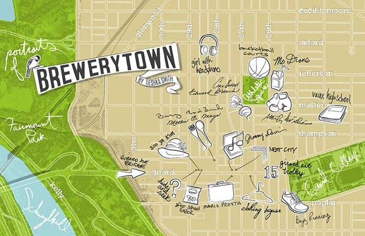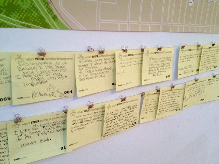 The part of this exhibition that really sets it apart, however, is its interactive map element. A large map of Brewerytown towards the end of the show is labeled with the locations of all Smith’s photographs and visitors are encouraged to share and add their own stories with corresponding numbers on the map. These notes from the visitors and residents of the neighborhood are funny, sweet and sometimes heartbreaking.