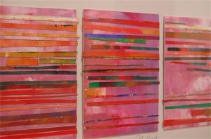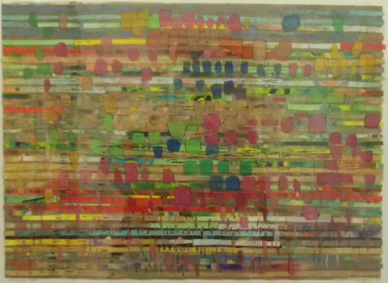 Gallun’s landscape abstractions, spiritual quests for connection to ancestors and the land, have a Turner-like ability to mesmerize and suggest the ineffable. These works, mostly collages made of layered painted paper strips, sometimes with vintage photographs embedded, capture the ripple of oasis mirages in the desert in breathtaking technicolors, always barely out of reach but pulling and pulling toward an elusive resolution.