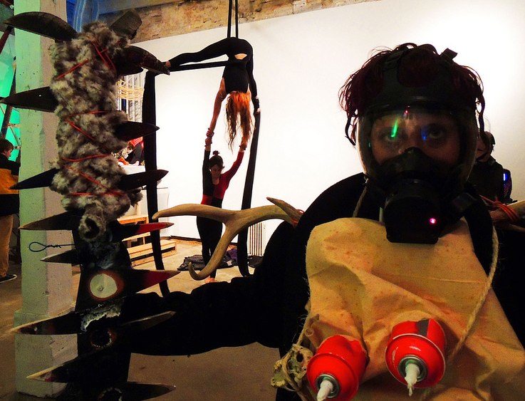 MJK: So the New World has been created. Over the next month it will evolve. On Saturday, March 9th we had some shamanic performance artists traveling all the way from Chicago to conjure some ritual infused magic for us. The world will get older and less superstitious until it reaches a more modern maxim on Friday, March 29th with Mariana J. Plick’s play Cirque Skeletique. The play is a combination of circus acrobatics and sideshow acts telling the story of a troupe of performers who attempt to survive in the New City where it is becoming increasingly harder for underground artists to do their work. The audience will sit in a circle around the room as a surreal circus flies through the air at the center. All I can say is that the month will only get weirder and weirder.