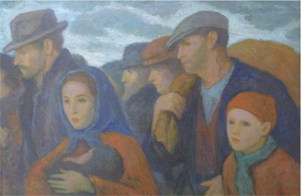 Even in the throes of the Great Depression, America still was a promised land for Eastern European immigrants seeking to escape oppression and cultural stagnation. As a result, the lens through which these painters saw the world is optimistic, even as it is sensitive to the sufferings of the common people. The general spirit of the confused but hopeful crowds who came to the U.S. during this era is best captured in this show by Julius Bloch’s painting The Emigrants, a simple painting which elegantly captures the mixed emotions of travelers coming to the United States. It’s only too bad that the National Museum of American Jewish History cannot provide more gallery space for this exhibition, as an even larger show would paint an even wider panorama of the troubled and perhaps too-little remembered lives that average people endured during the Depression.