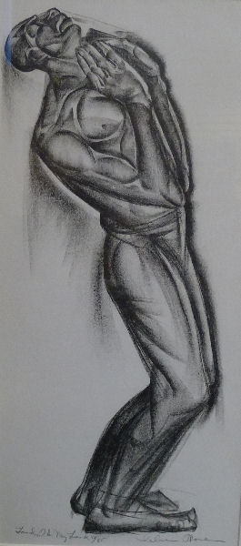 Iver Rose, a Chicago native, created Lord, Oh My Lord, a lithograph in this show where the nearly naked African-American subject presents an image of life resisting suffering and pain in every line. His posture, constrained by the dimensions of the composition, contrasts sharply with his muscled body, healthy and full of life. With an agonized facial expression and massive hands clasped together in mute supplication, this figure is praying for release – although whether from the economic suffering of the Depression or racial discrimination of the era is unclear.