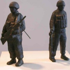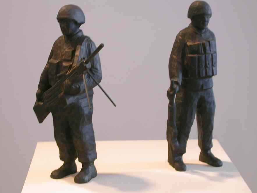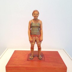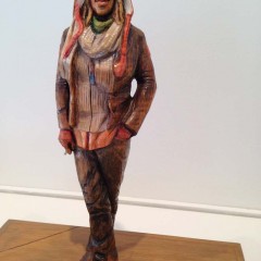 Susan Hagen‘s carved and painted wood sculpture portraits are big personalities in tiny packages. A little over a foot tall, the teenager Olivia, for example, seems a fully-realized young lady. Her smile and stance suggest she is comfortable in her body and friendly, in spite of being a teenager! Hagen, says in this video interview that she is inspired by 15th Century German wood carver Tilman Riemenschneider, whose quiet portrayals of saints and church patrons imply individuals with complex inner lives. Hagen captures a lot of the same naturalness and quietude in her works. Because she works in series or typologies — citizens of Philadelphia, soldiers, prisoners, teenagers — her works remind me in spirit of another German artist of more recent vintage, August Sander, whose portrait photographs of farmers, soldiers, bakers, chefs, created an archive of a time and place (images here).
