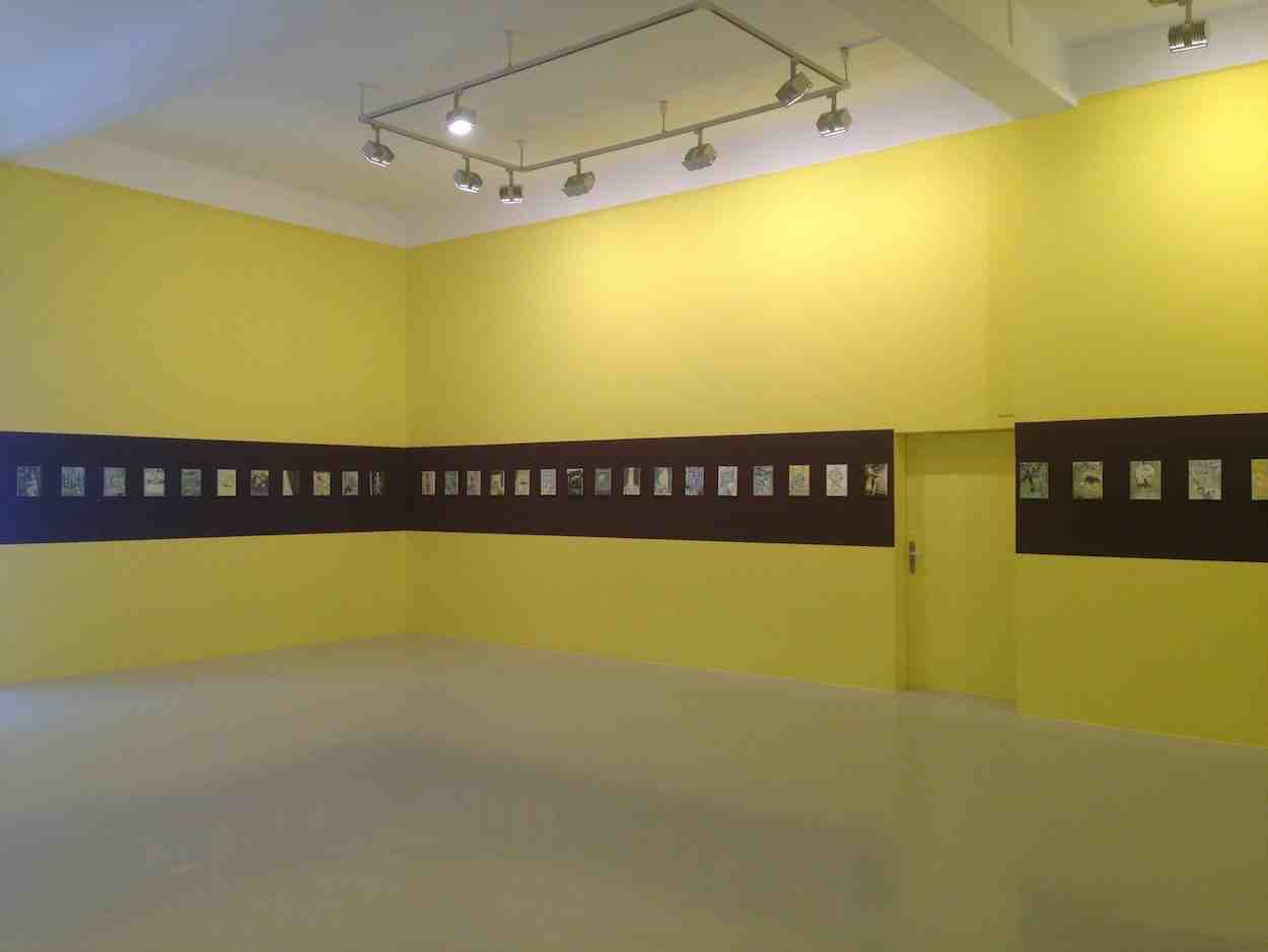 My final stop in Berlin was the n.b.k gallery on the Chausseestrasse, also in Mitte.  Valérie Favre’s Selbstmord. Suicide, which closed July 28, 2013, is a powerful exhibition wrapped in the dramatization of life and death. The Suicide Cycle (2003-2013) presents 129 small format paintings representing the moment of life’s end. Each canvas depicts a different method, narrative, or cause, painted in a hazy, unfinished manner that reflects our inability to witness this private and intimate act. Familiar figures such as Mark Rothko, Sylvia Plath, and Vincent Van Gogh take their place in the scenes, while other narratives are drawn from the artist’s imagination, newspaper reports, or historical tales. The individual canvases exude an air of solitude that exists in contrast to the room’s collectivity, inviting us to reflect on both the intimate and the communal through sublime imaginations.