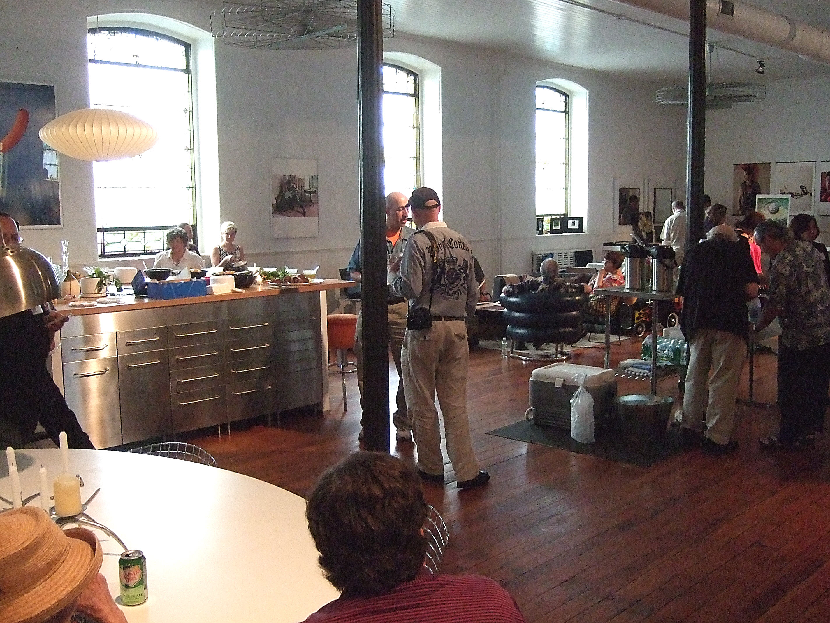 The party was a fond welcome to the coming summer with smooth jazz, delicious food, drink, and conversation, photographers and picture portfolios. The greater purpose of this party was for photographers to present and share their portfolios to all in attendance. It also served as a learning exchange of ideas, technique and technology. Book dealers and appraisers rounded out this purposeful mix.