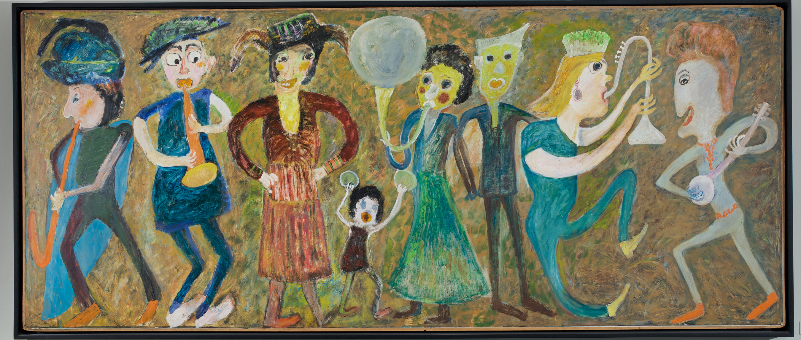 Next up is “Sharadiant,” a spiral of mop and broom handles, buzzing with vivacious primary colors. Having amassed these sticks after years of Lower East Side garbage scrounging, Feher stages a very simple intervention: rather than transforming his materials (by cutting, painting or casting them), he merely uses their existing hanging holes to string them together, creating a formalist play of line, space and hue.