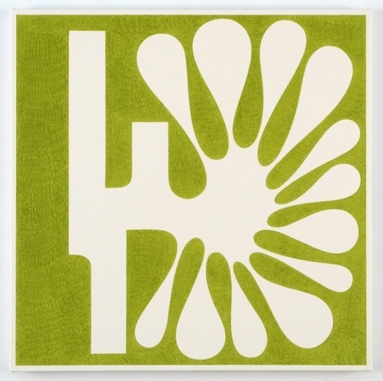 Cary Smith’s Splat #25 (green) is not just a “splat” – an onomatopoeic word that captures in its sound the meaning of a senseless, un-examined, un-planned dollop of paint being flung at a canvas. This contradictory title is an early warning sign that we are in the territory of a playful artist. The viewer’s eye is promptly drawn to the negative white space in Splat, which is seductively curvaceous with the air of a decoupage by Matisse. The deceptively-simple green background actually teems with tiny, living brushstrokes.