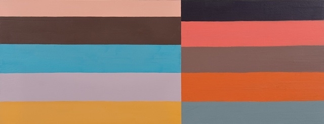 Continuing with the geometric theme is Paige Williams’s Hardly Noticed, which at first glance resembles a dull two-dimensional design study. But the slightly off-center median tilts the entire composition askew. The piece’s title applies to this puzzling and almost comical sleight of hand by which the Ohio-based artist activates several rectangular color bars around a wobbly center of gravity. From that point on, the viewer’s eye spirals outwards, taking in the various colors and their uniquely-intertwined earth and flesh tones.