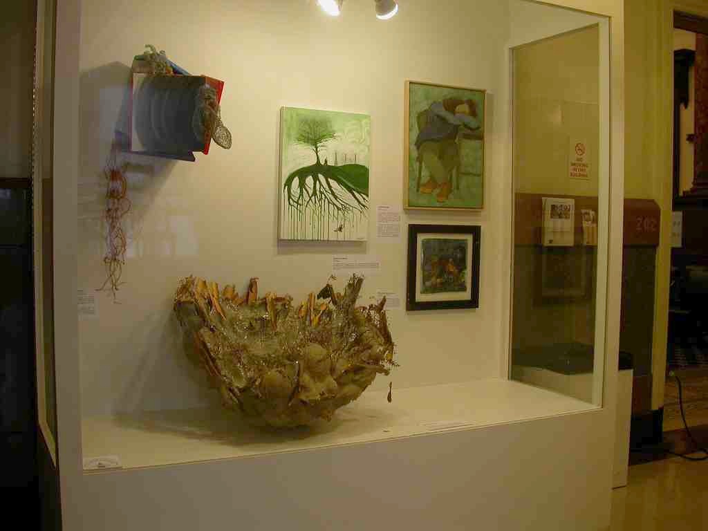 I always have mixed feelings about the Art in City Hall shows. On the one hand, I’m completely sold on the idea of art in public spaces. On the other, City Hall’s tall, narrow glass vitrines, placed on two floors of the building, are a challenge for the art and a challenge for the viewer.