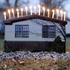 In Grizzly Grizzly’s small gallery, the sculptures are arranged on a simple board balanced over two saw horses, high enough to provide a slightly aerial view, but low enough to require squatting for a good look– giving viewers the perception of peering into a miniature model of a strange, sculptural village, while the tiny architectural elements seems as if they are intended to be picked up and handled, like tools to decipher the space they inhabit.