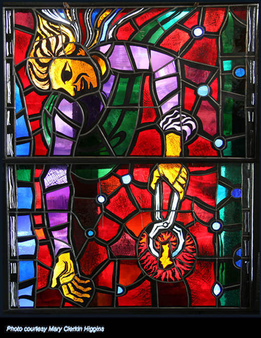 Swanson spends a good deal of time filling in LeCompte’s backstory. The artist got his first commission at 16 and quickly gained admiration for his bold, modern approach to the artform. While many traditionalists felt stained glass windows should be muted and restful, LeCompte’s windows are more often richly hued and sparkling with color, with a greater focus on patterns than literal imagery.