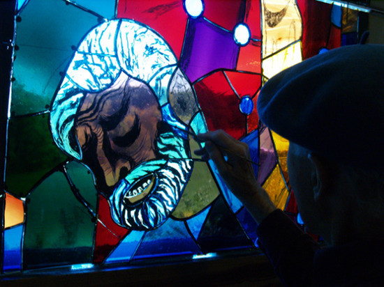 Dieter Goldkuhle similarly comes across as a passionate artisan (“I’m not an artist,” he insists) who has devoted his life to his craft. His job is to select glass, cut it, piece it together and, once LeCompte has painted the panels, to fire it. We see him engaging in each of these steps, and stop briefly in the glassworks in Germany he sources from, where panes of glass in every hue imaginable are handcrafted in what Goldkuhle calls “a ballet around a furnace.” Goldkuhle is thrilled by “the magic of glass and the relationship it has with light,” and is clearly in love with the medium.