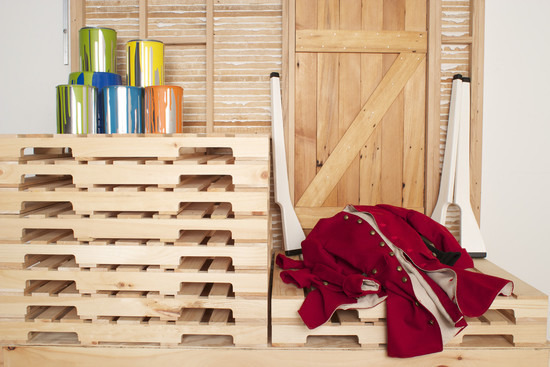 Each of the three segments of the installation was conceived separately, according to Colburn, but the three blend together into one attitude, atmosphere and idea. “Centennial (American Still Life)”(above) looks like the inside of a fort where a soldier/artist (represented only by a jacket draped on the piece) has been stationed with toy guns and several buckets of paint.