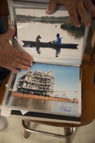 The Houma Nation spans six parishes, or counties; though these communities are distant when traveling by land, they were historically easily accessible by waterway. This is no longer true: coastal erosion, both natural and caused by oil companies laying pipeline, “has left these waterways either nonexistent or impassable and often treacherous,” explains the Houma Nation website. The Deepwater Horizon oil spill that began in April 2010 also invaded the marshes where the tribe hunts and fishes. Now, the Houma face further fragmentation of a community already physically spread thin.