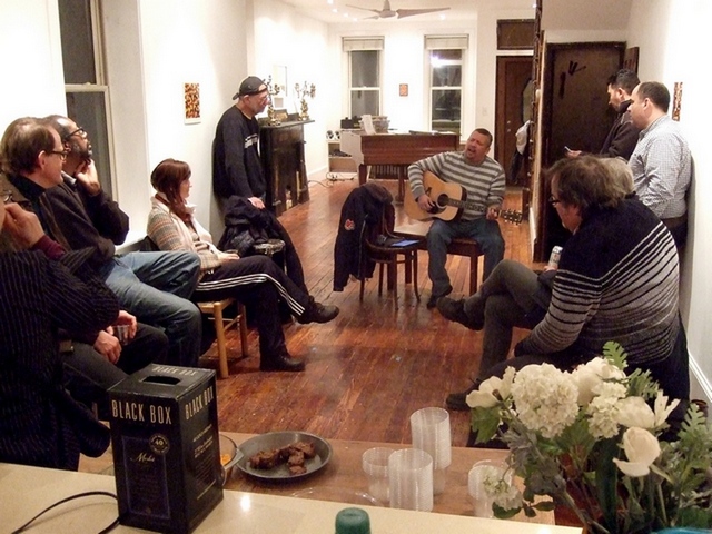 Marcuse and Bermudez open their home to present the work of various artists and the many mediums of expression. It’s an atmosphere welcoming all who come. Brian John Cote, a resident of Fishtown, was the featured artist this night. His art has been exhibited in New York, Berlin, London, and at home in Philadelphia.