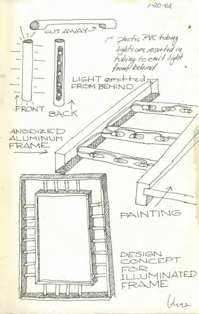Brian Cote’s work history includes graphic design and illustration; he also works as a house painter. These skills became evident as I read through his journals. Various detailed design concepts for some artistic framing designs appeared numerous times.