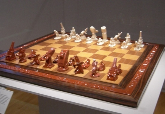 The gallery beyond this includes an F.K.23 Bantam WWI fighting plane amid the more usual design displays of furniture, tableware, and architectural designs. Military tools are rarely seen in art museum design collections; when arms and armor are displayed in art museums, they are generally ceremonial, rather than those used in actual battle. I don’t know whether the omission is intentional or not, although the Museum of Modern Art (MoMA) has long had a Bell-47D1 helicopter, which dates from the Korean War, suspended above the entry to its design galleries. While it was later certified for civilian use, the helicopter’s primary market over several decades was military, and I’ve always been a bit surprised that it has never attracted controversy. Am I the only person who thinks it is worth at least having a conversation about aestheticizing the paraphernalia of war?