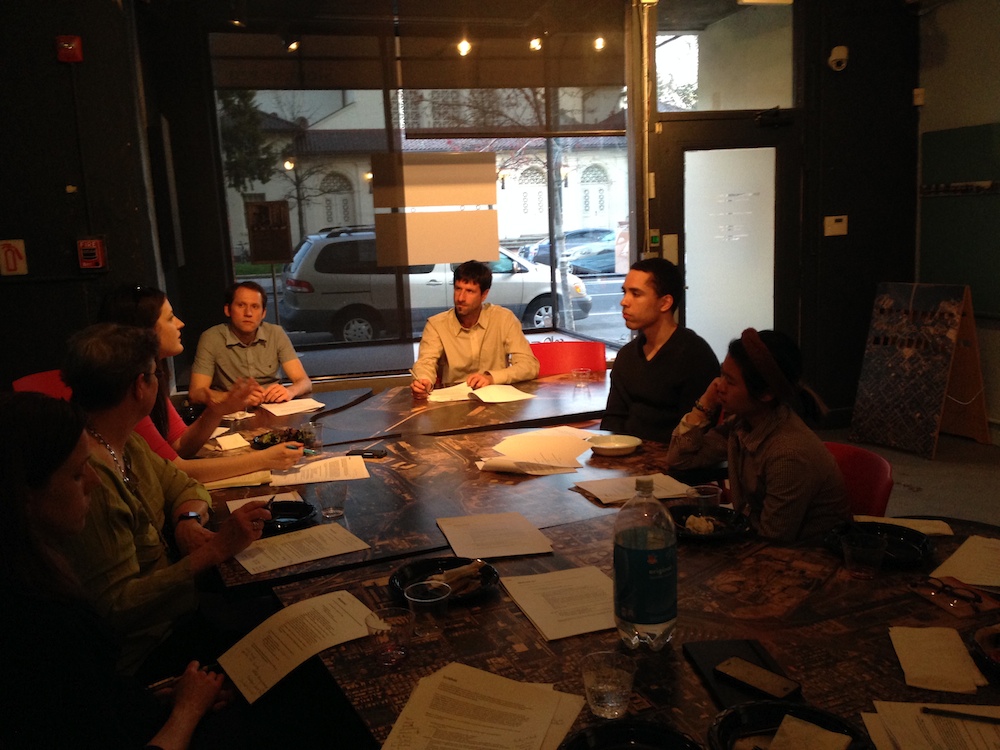 Last night, we met with a big group of Knight Arts Challenge winners and representatives of the John S. and James L. Knight Foundation at a celebration where Knight announced a batch of 19 new grants to Philadelphia’s performing and visual arts organizations and artists. The event at the Kimmel Center Roof Garden featured lovely short speeches by Knight Vice President for Arts, Dennis Scholl, and Knight Philadelphia Program Director, Donna Frisbee Greenwood. There was also a performance by the cabaret group Bearded Ladies, and a lot of happy people hugging and taking pictures.