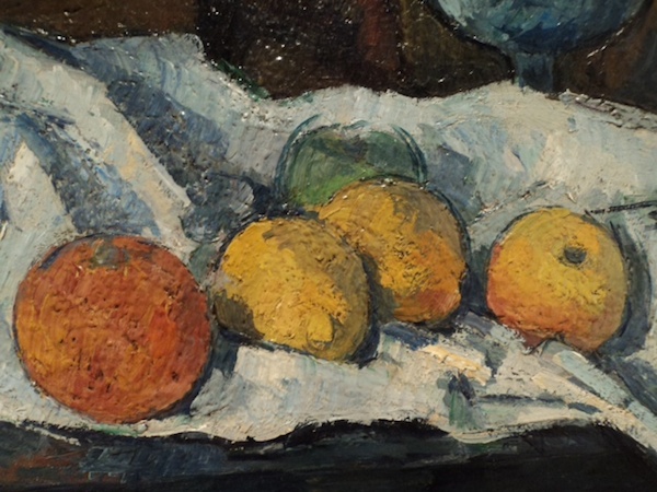 “Three Apples” is exemplary of Cézanne’s impasto, and also of the subject, focus, and working methods found in the 21 still-life paintings on view in The World Is an Apple. The Barnes’ large special exhibition space allows for liberal intervals and pauses between works. There is plenty of breathing space in which to consider the intensity of Cézanne’s painted surfaces and his radical approach to making a painting.