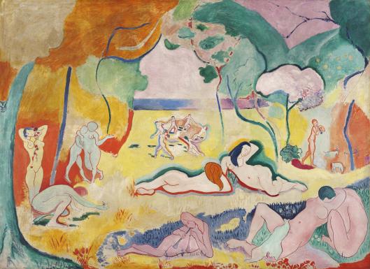 I was fortunate to be able to join a group of the Barnes Foundation’s upper-level supporters last week for a preview of the Foundation’s research on its substantial collection of works by Matisse, which includes two paintings essential to understanding the artist’s development: “The Joy of Life” (1905-06), crucial to the artist’s early development, and “The Dance” (1930-33), a mural commissioned by Dr. Barnes for rooms housing his collection. Matisse used cut paper in designing “The Dance,” anticipating his use of cut-out, painted paper in his last works, in the 1940s.