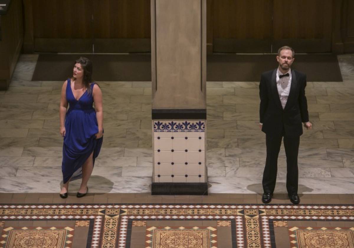 Fringe volunteers then direct the audience inside the Landmark Building, where we are greeted by four jilted lovers giving away the belongings of their ex-lovers. Each box contains something completely different: toothbrushes, T-shirts, CDs, and teddy bears (I was given a teddy bear). These items give us a piece of these characters’ tortured past. Once we are broken into groups to move around the Landmark Building, we give the belongings back to the PAFA staff, which had boxes ready to be stuffed.