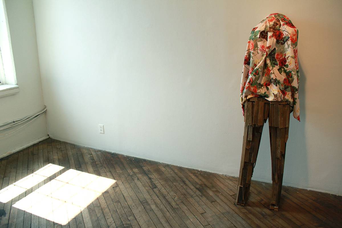The pieces in this show act as formal elements within a photograph–like texture (the soft and harsh contrast of textures in Anna Neighbor’s above piece), line (Anna Neighbor’s “An Attempt (#2)”), or frame (Sarah Palmer’s monochromatic prints). One of the most successful elements of the show was not a piece per se, but the decision (was it?) to allow light to come through the window and expose its likeness onto the floor, perfectly contained to a rectangular, glowing box of light, with the wooden separators between panes forming a grid pattern in line with the “rule of thirds” etched in the brain of every beginning photo student. This irony did not escape me.