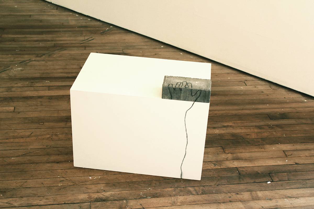 Anna Neighbor’s “An Attempt (#2)” is an exercise in lightness, space, and loss made with heavy and dense materials. The white box is the void–all the spaces in between–and perched on top of it is that singular brick of grey, the substance.