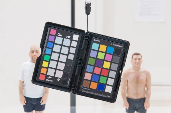 Jaime Alvarez’s photo post is part of an occasional series of images taken in artists’ studios when Jaime is shooting professional images of artworks. (Jaime is also a fine art photographer and member of Tiger Strikes Asteroid gallery.) The candy-colored object is a calibration tool to help the photographer calibrate the color for the photo shoot. Jaime asks the artist to hold the calibration tool. Sometimes the artist puts him- or herself into the photo, and sometimes all you see is the artist's hand reaching into the frame and holding the calibrator. The result is a working image made in support of the finished photographs. This is a behind-the-scenes look at a working process the photographer uses to “get it right”. The photos have some whimsy and mystery, and we love the calibration tool, which reminds us of an eye shadow makeup kit. For more information on Jaime, visit him at http://www.jaimephoto.com –the artblog editors