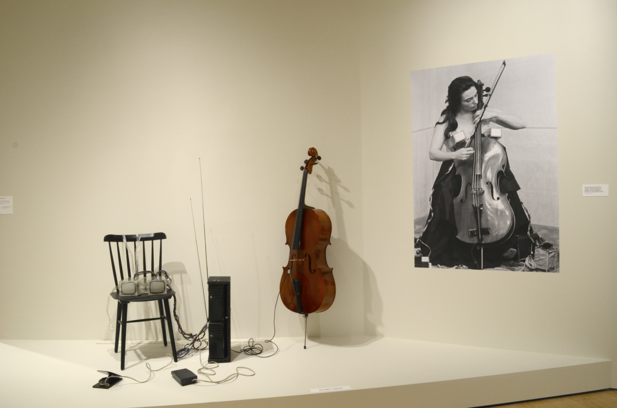 The exhibition includes documents, sketches, and proposals, such as the “Utopian Laser TV Station” (1966); videotapes, including “Electronic Opera #1” (1969); numerous rarely-seen drawings, and substantial video sculptures. It demonstrates the possibilities of the synthesizer that the artist developed with engineer Shuya Abe in 1969, which enabled manipulation of video images to create kaleidoscopic collages, decades ahead of the broad availability of video-manipulating software. There are also artworks that featured his many collaborations with cellist Charlotte Moorman, such as “Light Bikini” for “Opera Sextronique”(1966/75); the cellist was arrested for indecency at its debut performance.