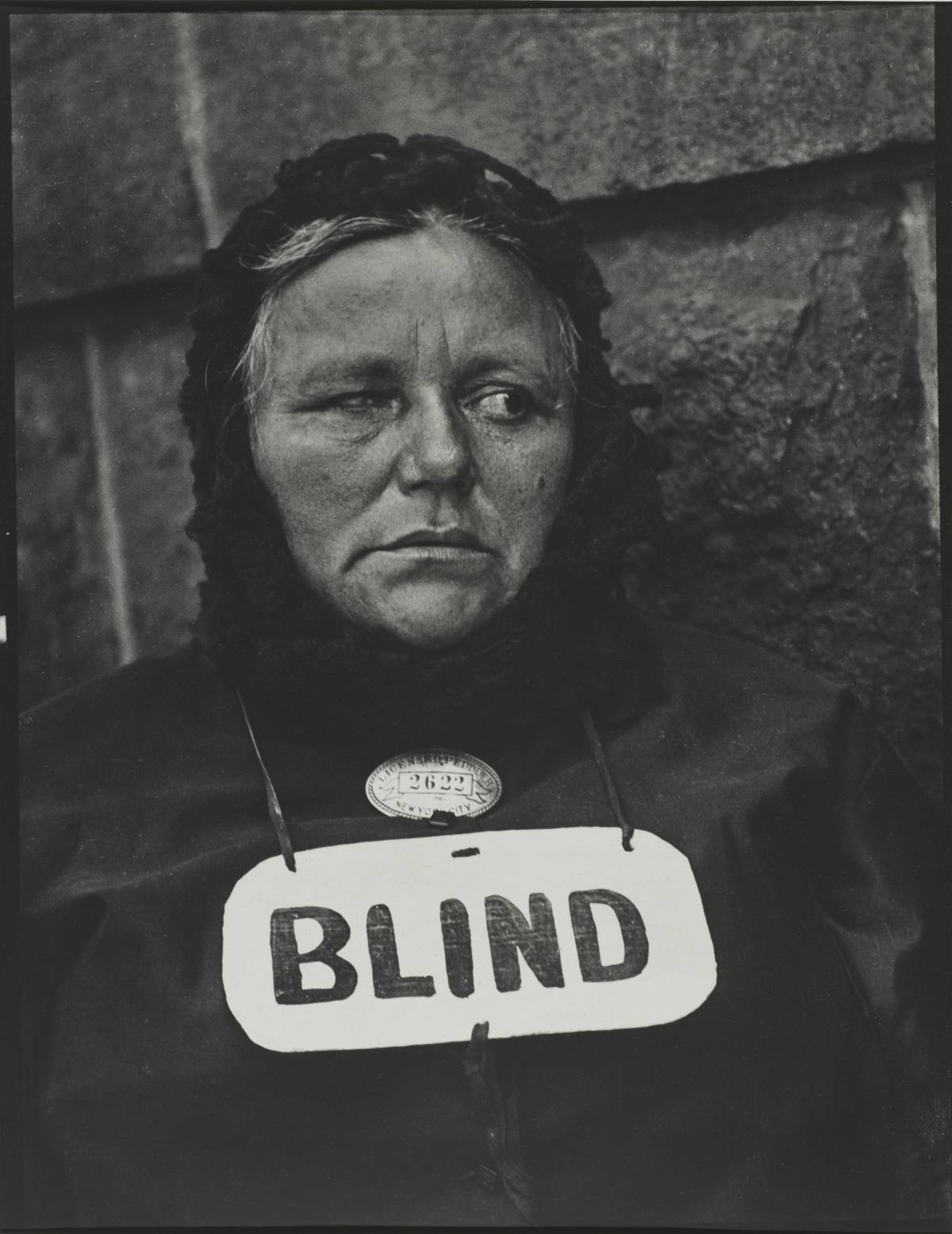 His other street portraits from the same period, notably “Blind Woman, New York” (1916) were often made in this same slow and methodical way. Strand even mounted a false lens to his camera so that he could establish himself in the street and wait until his presence was not unusual, finally taking the shot when his subjects were truly indiscriminate and sometimes looking directly at the camera (though they did not know it). These are unflinching and unbiased pictures of the lifeblood of New York City at the time: street dwellers and merchants, those on their way to work. Strand rarely included text in his photographs, which makes “Blind Woman” all the more powerful.