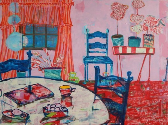 Constance Culpepper’s last show opened December 19, 2014, and you can see it until January 17, 2015 at Snowflake Salon’s Biennial Winter Invitational 2014. It ends with a closing Tea Party that day from 4 – 6 pm. And there’s more: coming up, she and Melissa Maddonni Haims are appearing in a show of Interior Paintings & Knitted Sculpture from March 10 – April 8, 2015, at Ringling College of Art + Design’s Englewood Center for the Arts. There’s an artists’ talk and reception on March 14, 2015 2 – 4pm.