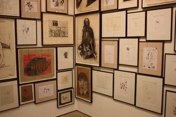 It seems appropriate that the swath of drawings and paintings on the wall of the first room includes drawings from the brothers’ very earliest excursions into art, portraits signed in childish handwriting interspersed with contemporary work. Some of these drawings show hints of the brothers’ macabre tastes: early manifestations of the juvenile fascinations so evident in their work.