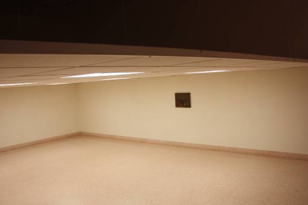 An interesting gesture was their transformation of what is usually the Children’s Gallery at the Jerwood, dropping the suspended ceiling to a height that would perfectly accommodate a child but strain the neck of any entering adult. The room is totally empty except for a painting on the opposite wall–a drab still life in shades of brown, innocuous, uninteresting, even, except for the signature: “A. Hitler”. Gore and obscenities are not the only way to shock an audience.