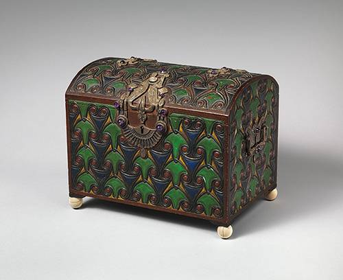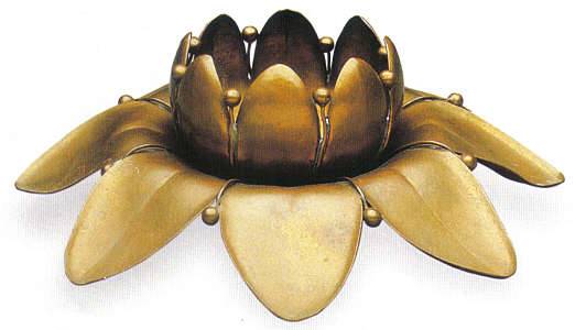 The second half of the book, written by Cunningham, has chapters on Zimmerman’s jewelry, tabletop objects, silver and gold, iron and bronze, and her use of color as ornament, something that distinguished her work. Zimmerman’s designs reflect the broadly eclectic taste of the period, which begins with the historical background of the Arts and Crafts movement, includes recent discoveries in Egyptian archaeology, and reflects a broader interest in the arts of China and Japan.