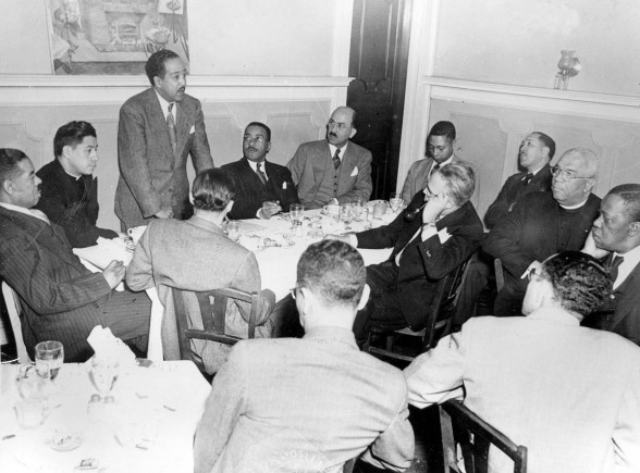 Horace Pippin and Dr. Albert Barnes at the Pyramid Club Art Exhibition, 1944. Courtesy of the Charles L. Blockson Afro-American Collection, Temple University Libraries, Philadelphia, Pennsylvania.