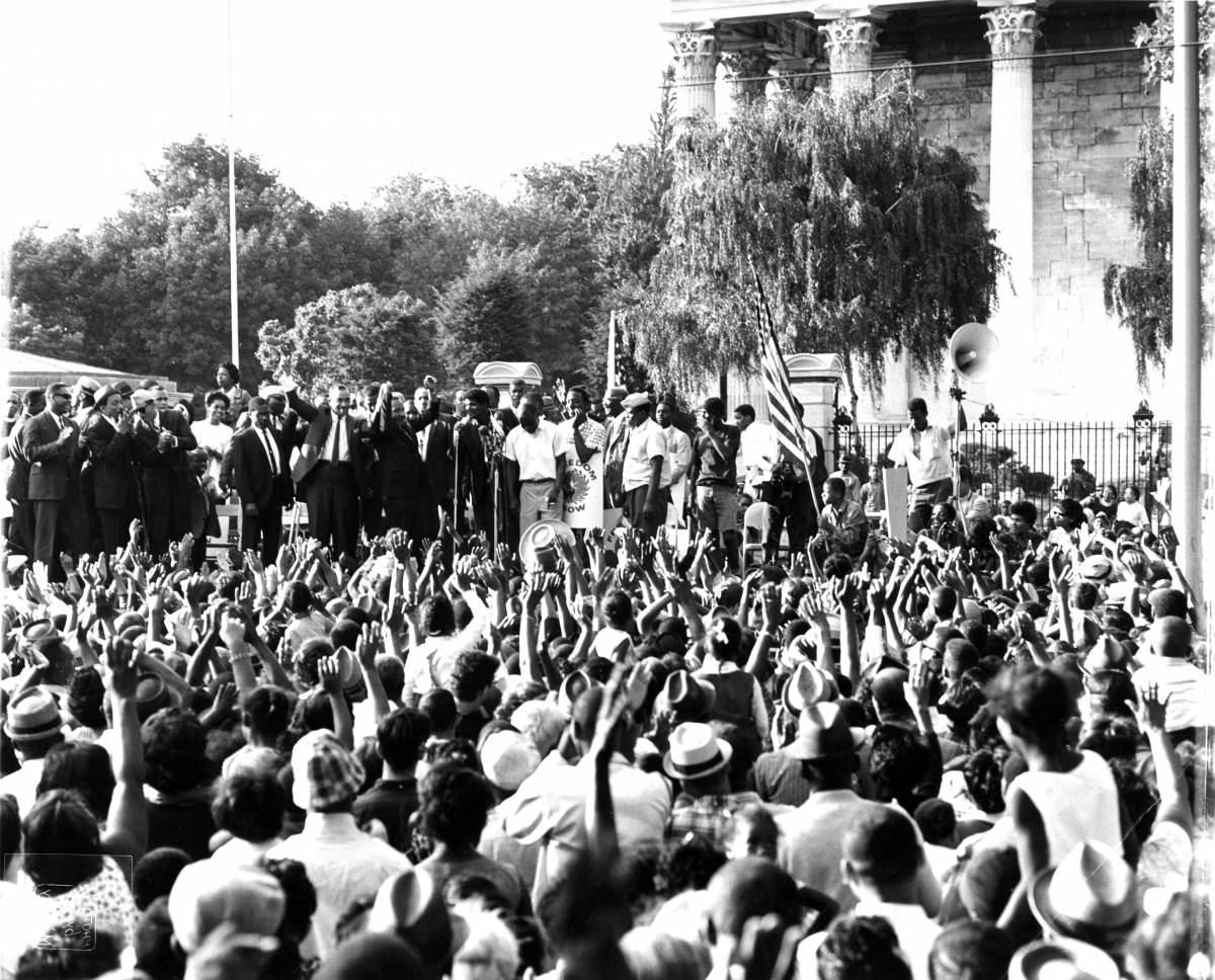 * As Cecil B. Moore and the Rev. Dr. Martin Luther King challenged segregation at Girard College during the 1968 protests.