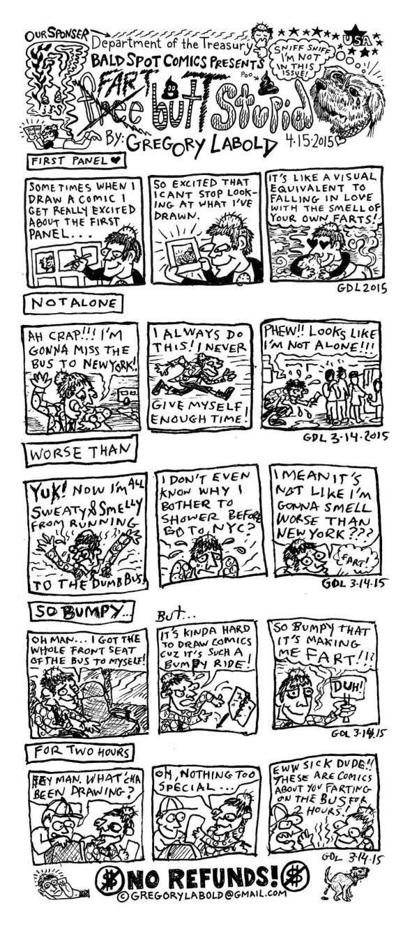 [Bald Spot Comics by Gregory LaBold appear on Artblog this April courtesy of our Guest Editor, The St. Claire! ]