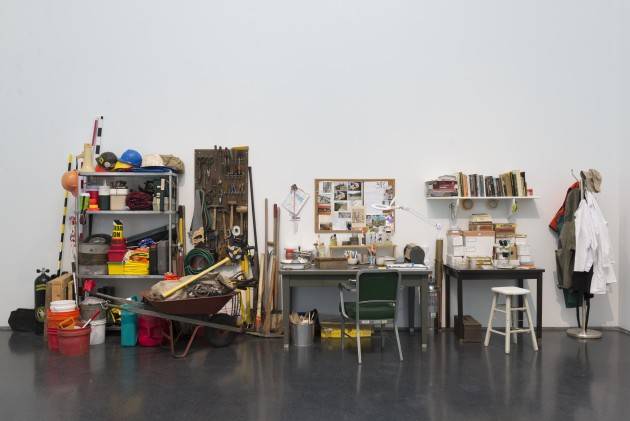 The more than 30 European and North American artists in the exhibition include Moyra Davey, Tacita Dean, Stan Douglas, Mark Dion, Cyrpian Gaillard, Gabriel Orozco, Anri Sala, and Hito Steyerl. The catalog includes a page-long essay on each artist followed by several full-color illustrations of works in the exhibition. It was clearly intended to attract detailed notice as an object itself–a distinctive and handsome one. Designed by James Goggin and Scott Reinhard, who variously acknowledge historical book production and cataloging, its colophon might have been written by an obsessive artifact registrar; it lists all the materials and methods of both contents and binding, noting that “the last remaining supplies of PS4885 Olive Green [buckram cloth] in North America wraps the spine and part of the face of the book, and that the endpapers are derived from rock stratigraphy illustrated in a 1955 geology text, which is thoroughly cited. An entire column is devoted to the nine (!) fonts employed, with a brief history of each.